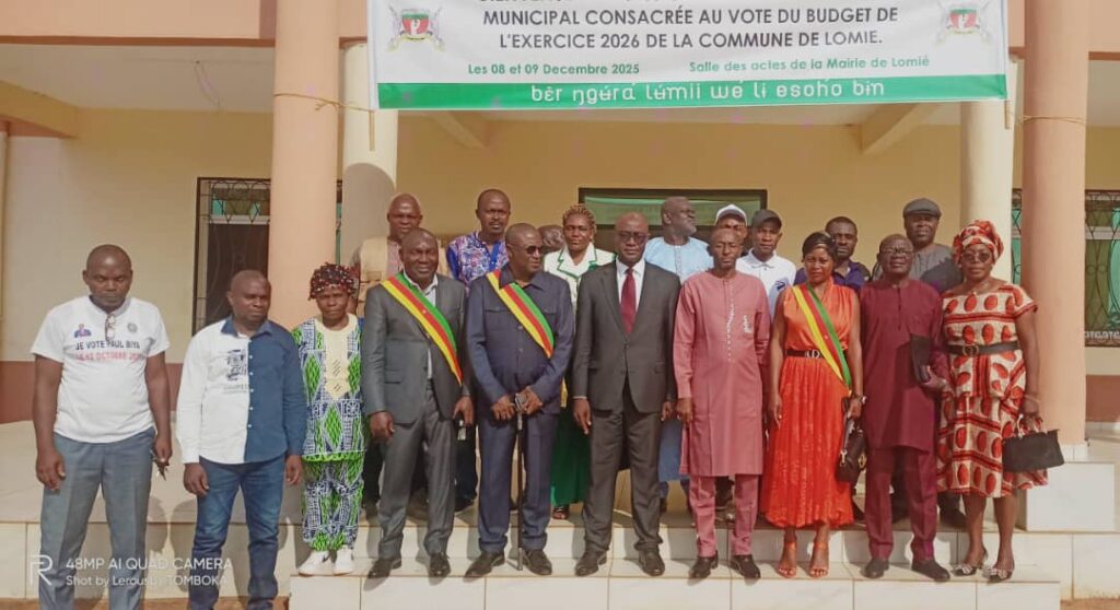 La Commune de LOMIÉ, moteur économique du Haut-Nyong, a tenue le 8 et 9 décembre dernier le processus d’adoption de son budget 2026, voguant vers une ambition de projet à hauteur de 1,22 milliard FCFA. Sous la présidence du Maire,Sa majesté Gérard LOMIÉ, ce conseil municipal marque une étape cruciale dans la réponse aux besoins essentiels des citoyens.Dans un contexte de décentralisation accentuée, les élus se sont réunis pour voter un budget répondant aux enjeux contemporains et préparant des infrastructures modernes pour l’avenir,en présence de Steve Pierre BIDOUNG KPWATT, représentant du préfet du Haut-Nyong.