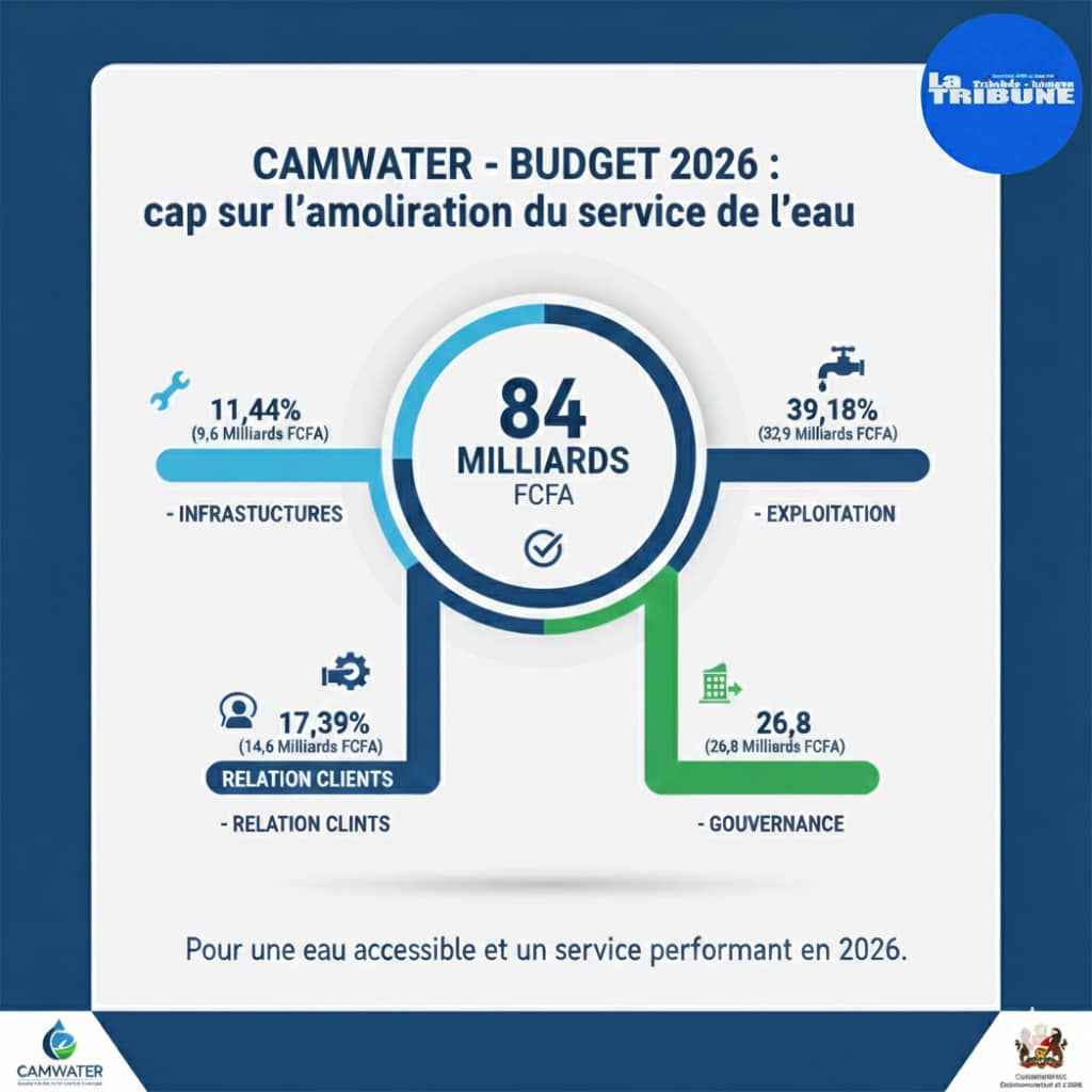 Pour bien comprendre comment cet argent sera utilisé pour transformer le quotidien des Camerounais, voici les grands piliers retenus :Développement des infrastructures : 9,6 milliards de FCFA (11,44 %) pour étendre les réseaux.Gestion de l’Exploitation : 32,9 milliards de FCFA (39,18 %) pour assurer la disponibilité de l’eau. Relation Clients : 14,6 milliards de FCFA (17,39 %) pour un meilleur suivi des abonnés.Gouvernance et appui : 26,8 milliards de FCFA (31,98 %) pour piloter ces changements.