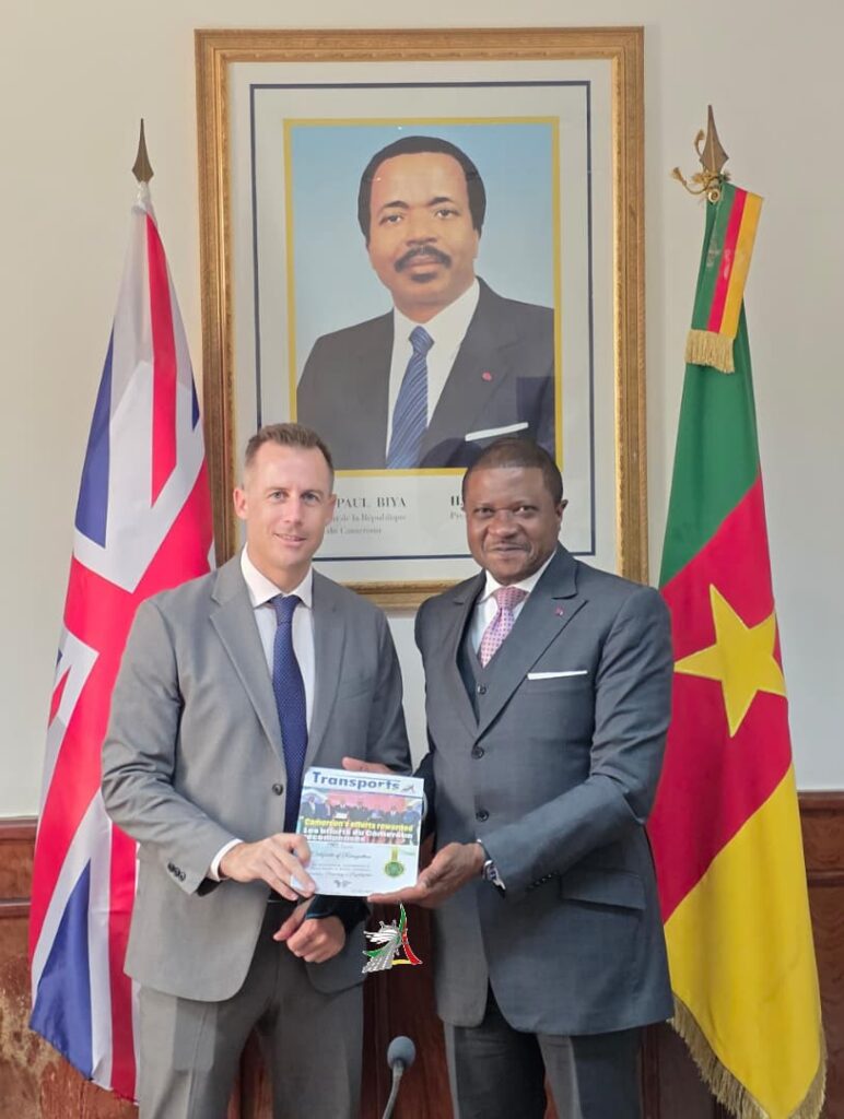 H.E. Mathew Woods’ presence at the Ministry of Transport was guided by the following preoccupations: the increasing number of ships claiming to be registered under the Cameroon flag (from 32 as of 2025 to 132 as of date); sanction of fraudulent ships under the Cameroon flagship and offer of technical assistance to Cameroon ship registration procedure. Following these preoccupations, it was fair to brief the august guest on the efforts put in place to arrest this situation of ghost ships downplaying Cameroon’s integrity. These are the measures taken so far: an MOU with America to serve with a tracking system but the MOU is on a halt; digitalisation of the registration process with the four centres of Douala, Limbe, Kribi and Garoua; collaboration with ANTIC to identify the fraudulently registered ships and penalty ranging between 5 millions FCFA to 10 million FCFA for ships that put off their IES when sailing.Bade follow these actions, challenges were enumerated, notably: absence of a monitoring and surveillance system and technical diligence of the Merchant Shipping Code. The firsthand solution proposed was information-sharing between UK and Cameroonian experts; UK experts working with the four registration centres and ANTIC.At the end of the meeting both parties vouch availability to collaborate so sanity is installed in the sector.