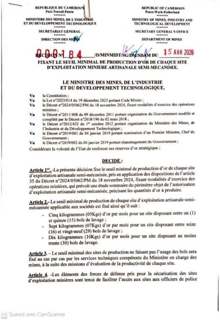 L’heure est désormais à l’application. Les brigades de contrôle ont reçu des instructions fermes pour faire respecter ces nouvelles directives sur toute l’étendue du territoire. Le message du gouvernement est clair : le secteur minier camerounais n’est plus un terrain de jeu pour les intermédiaires, mais un pilier structurant de l’émergence industrielle du pays.