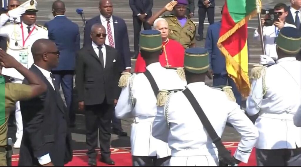 Le Premier Ministre, Chef du Gouvernement a officiellement accueilli Sa Sainteté le pape Léon XIV à l’aéroport international de Yaoundé Nsimalen ce mercredi 15 avril 2026. Cette arrivée marque le début d’une visite apostolique de trois jours au Cameroun, deuxième étape d’une tournée africaine visant à promouvoir la paix et à renforcer les liens entre le Saint Siège et le continent. L’atterrissage du Saint-Père, initialement prévu pour 14h55, s’est déroulé dans un climat solennel, contrastant avec les événements ayant marqué le début de son périple.
